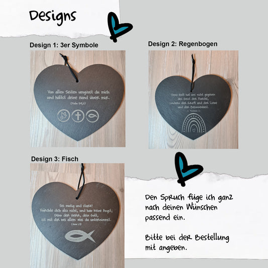 Schieferherz Taufe - 3 verschiedene Designs - mit eigenem Taufspruch personalisiert