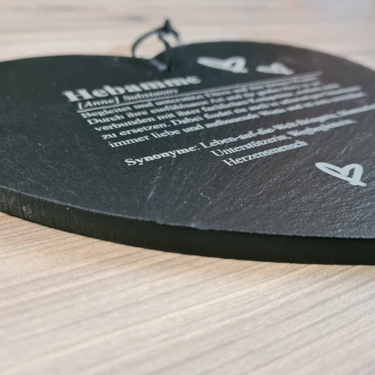 Schieferherz Definition "Hebamme" - personalisiert mit Name und Gravur auf Rückseite