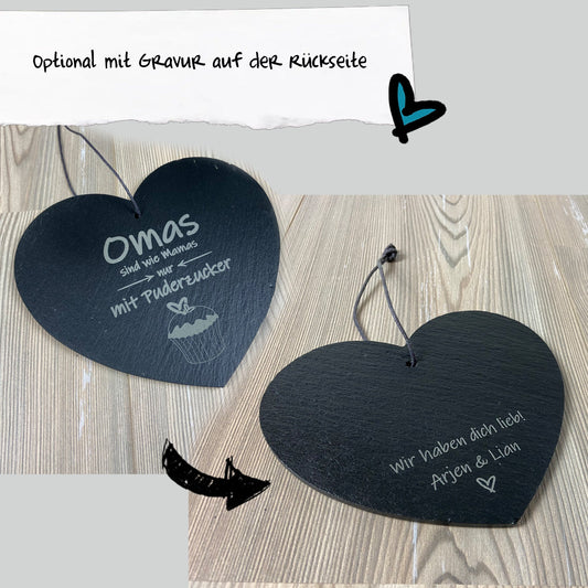 Schieferherz "Omas sind wie Mamas nur mit Puderzucker"