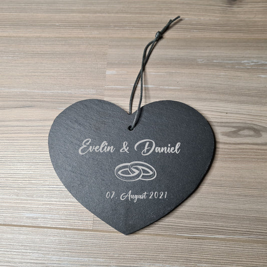 Schieferherz Hochzeit - Design 1 - personalisiert