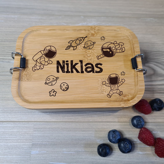 Lunchbox "Astronaut" - mit Name personalisiert - aus Edelstahl mit Bambusdeckel