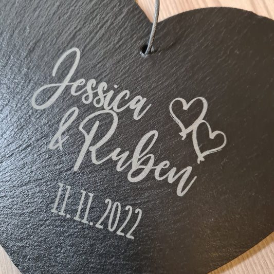 Schieferherz Hochzeit - Design 3 - personalisiert