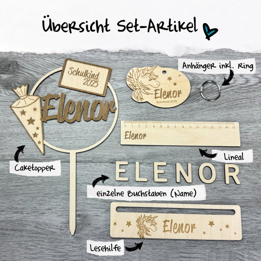 Set Einschulung - Schulkind 2025 - Einhorn, Sterne