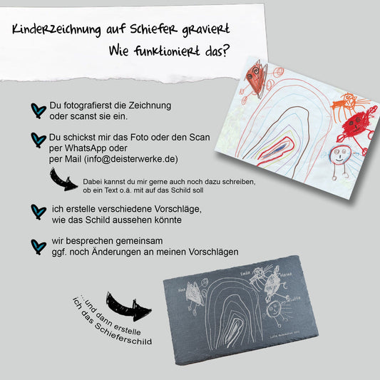 Schieferplatte Kinderkunstwerk, 15x20 cm - Kinderzeichnung im Original graviert