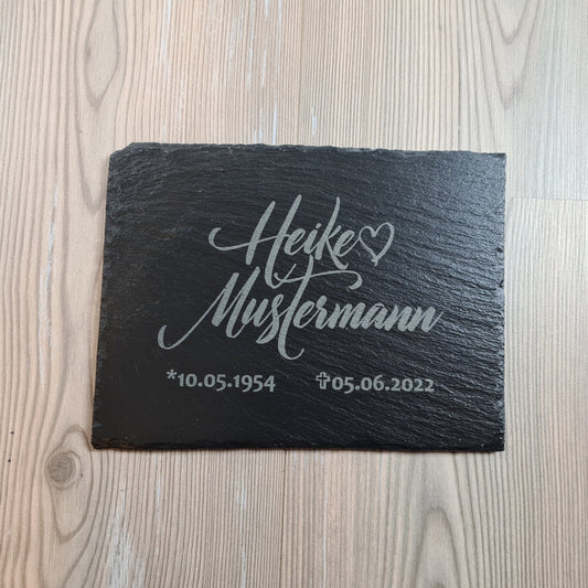 Schiefertafel, Gedenktafel personalisiert, Wunschgravur mit Name und Daten