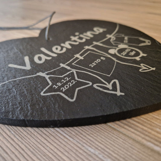 Geburtsschild - Geburtsdaten auf Schieferherz - personalisiert